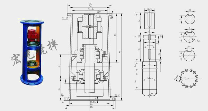 注:圖示所注“h”僅與本樣本BLD、LC-Ⅱ、DC-Ⅱ系列減速機(jī)相配,如選用其他型號(hào)或其他廠家減速機(jī),“h”需另行計(jì)算。增高后的LSJ型機(jī)架其下部空間高度可容納205、206或207型雙端面機(jī)械密封。