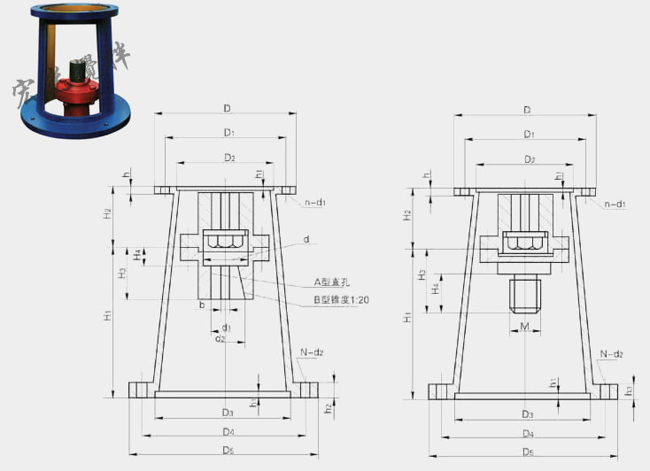 本機(jī)架適用于擺線針輪減速機(jī)的聯(lián)接,配剛性聯(lián)軸器,上聯(lián)軸器裝JA型直孔,下聯(lián)軸器裝A型直孔或B型錐孔,錐度為1:20的聯(lián)軸器。該機(jī)架無(wú)支承適用于反應(yīng)器傳來(lái)的軸向力不大時(shí)使用。