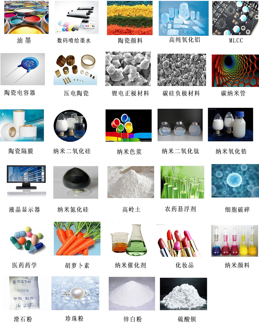 陶瓷材料、電池材料、數(shù)碼噴墨、高性能涂料、制藥等領域的研究與測試。