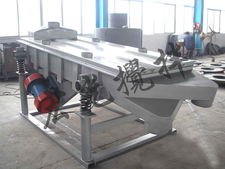 直線振動篩是雙振動電機(jī)驅(qū)動。當(dāng)兩臺振動電機(jī)做同步、反缶旋轉(zhuǎn)時,其偏心塊所產(chǎn)生的激振力在平行于電機(jī)軸線的方向相互抵消,在垂直于電機(jī)軸的方向疊為一合力,因此篩機(jī)的運(yùn)動軌跡為一直線。兩電機(jī)軸相對篩面有一 傾角,在激振力和物料自重力的合力作用下,物料在篩面上被拋起跳躍式向前作直線運(yùn)動,從而達(dá)到對物料進(jìn)行篩選和分級的目的。適用于粒度在0.074-5mm、含水量小于70%、無粘性的各種干式粉狀物料的篩分。大給料粒度不大于10mm。